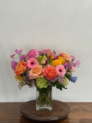 A $100 fresh flower design takes a medium design to the next level with high end florals and full lushness.