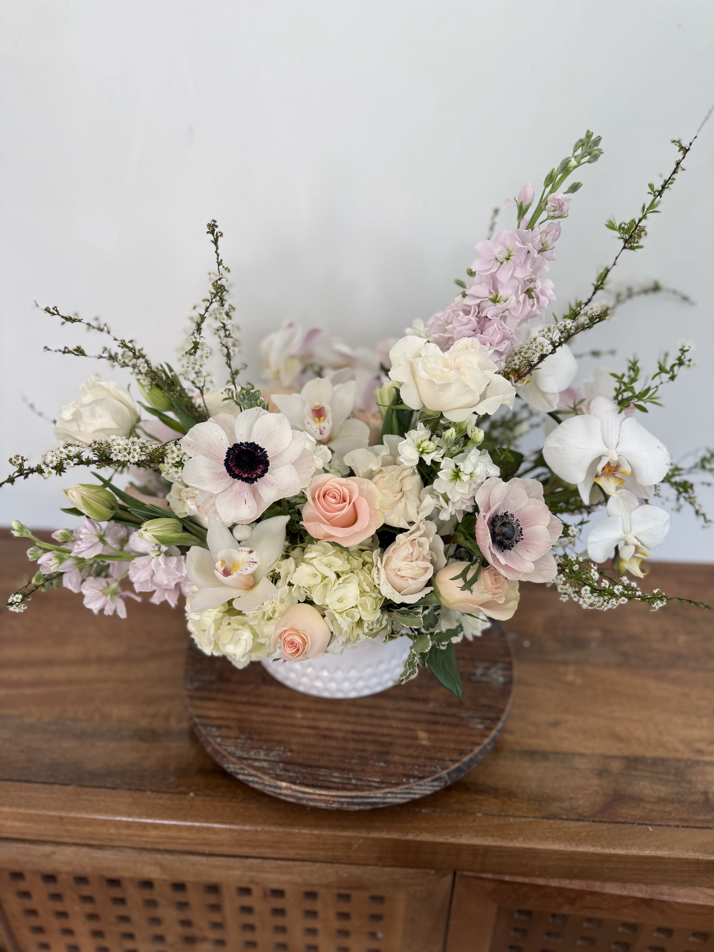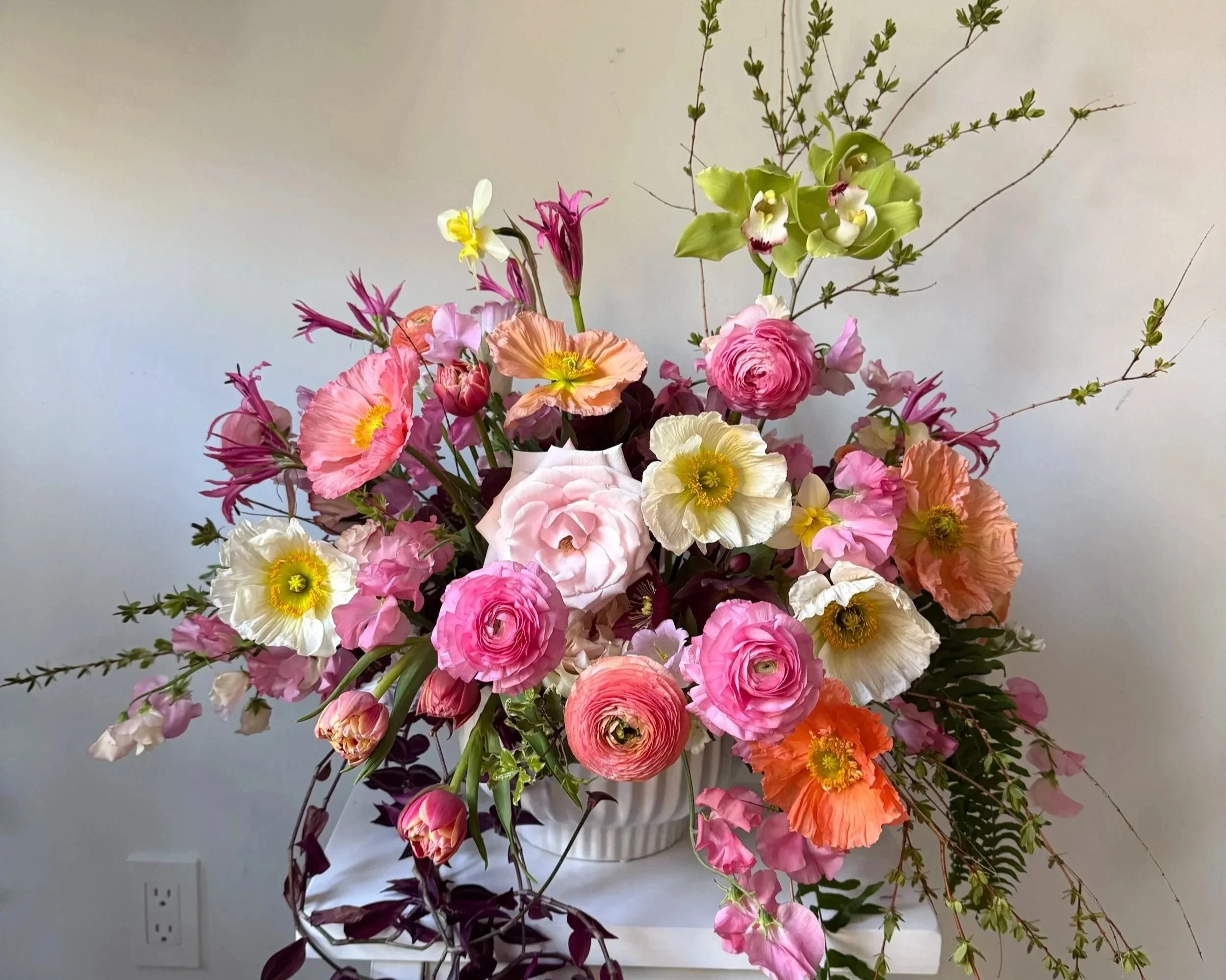 Like a snowflake, or a fingerprint, no two flowers, even from the same plant, are exactly the same. What has inspired us to be florists, is the artistry involved with all the unique shapes and colors of flowers. We get excited every time we see a type of flower available at the market that is not available all year long. Having unique blooms in stock that varies week to week is our goal. Because of this, we do not have pictures of what your design will look like, just examples of what your budget can get you. Allowing us to be artistic, and source unique blooms every time, is what really provides the “Wow!” factor. Reach out to us if you would like us to know your recipient’s favorite flowers, colors, and styles, because we want to make sure our client is thrilled every time. Order today and we’ll create something gorgeous for you!